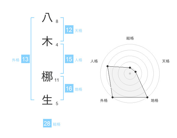 八木 梛生さんの総格は28画の1点!