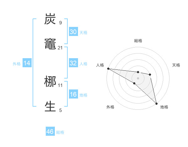 炭竈 梛生さんの総格は46画の1点!