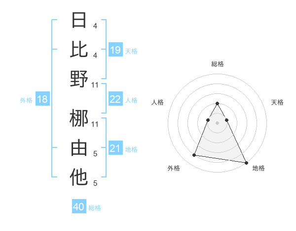 日比野 梛由他さんを姓名の画数から五運を鑑定