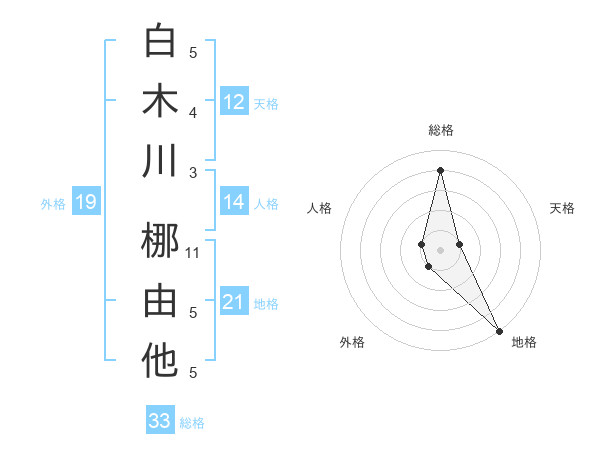 白木川 梛由他さんを姓名の画数から五運を鑑定
