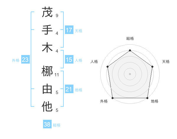 茂手木 梛由他さんの外格は23画の5点!