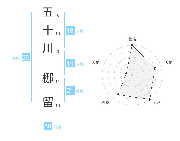 五十川 梛留さんを姓名の画数から五運を鑑定