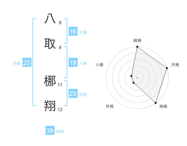 八取 梛翔さんの地格は23画の5点!