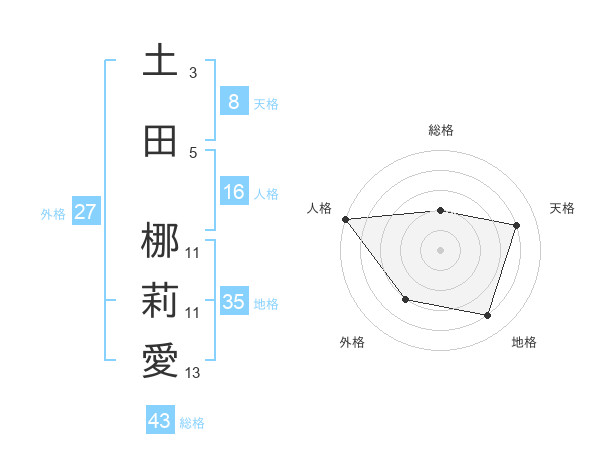 土田 梛莉愛さんを姓名の画数から五運を鑑定