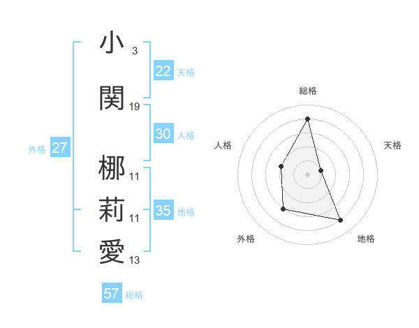 小関 梛莉愛さんの総格は57画の4点!