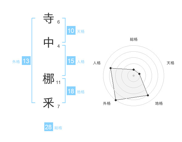 寺中 梛釆さんを姓名の画数から五運を鑑定