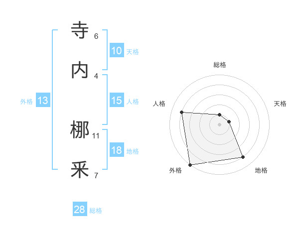 寺内 梛釆さんの外格は13画の5点!