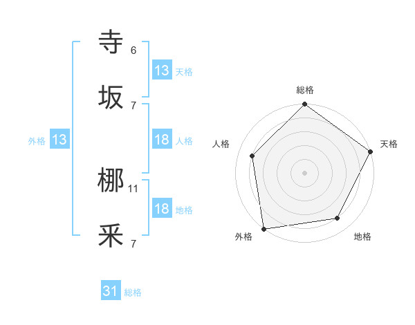 寺坂 梛釆さんを姓名の画数から五運を鑑定