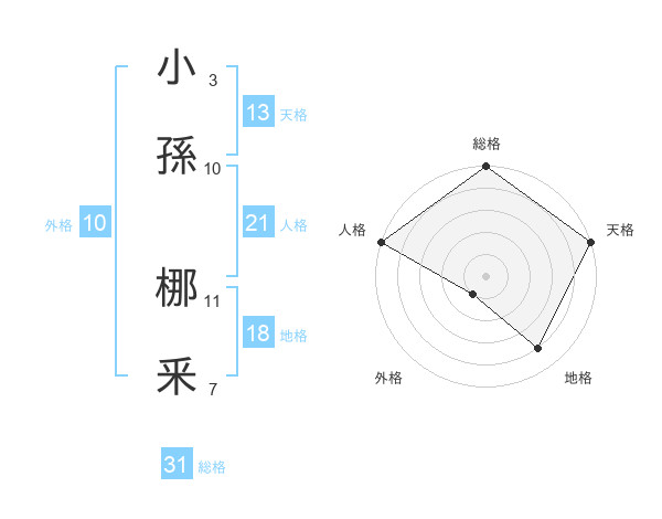 小孫 梛釆さんの総格は31画の5点!