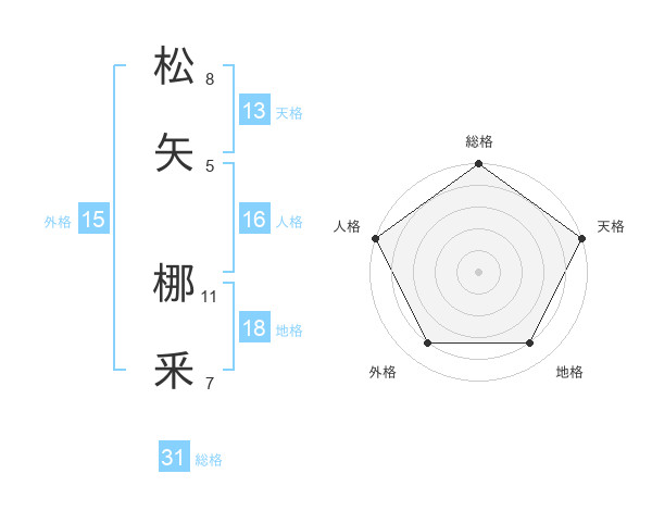 松矢 梛釆さんを姓名の画数から五運を鑑定