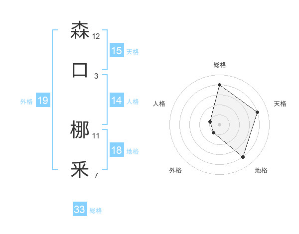森口 梛釆さんの総格は33画の4点!