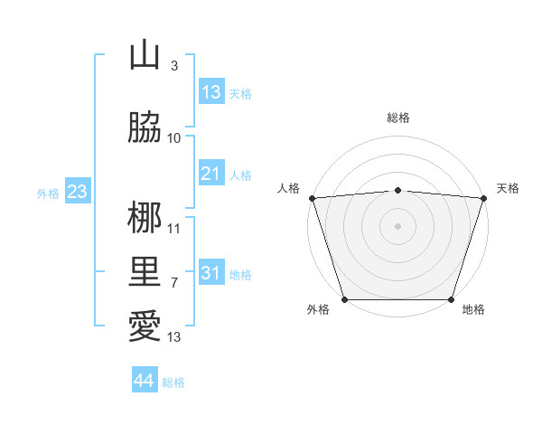 山脇 梛里愛さんを姓名の画数から五運を鑑定
