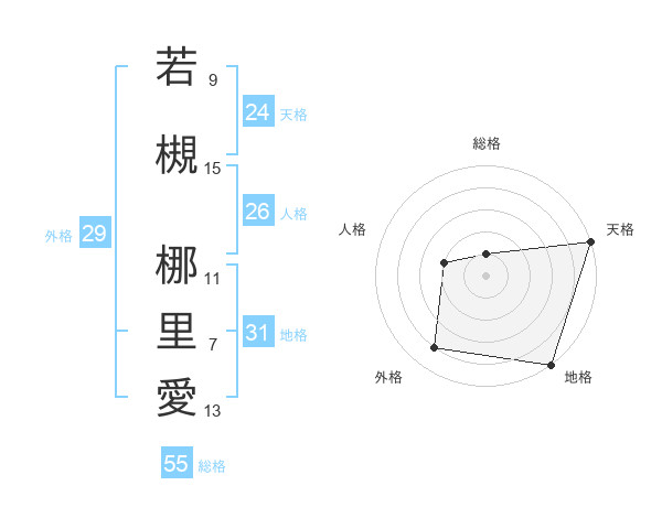 若槻 梛里愛さんを姓名の画数から五運を鑑定