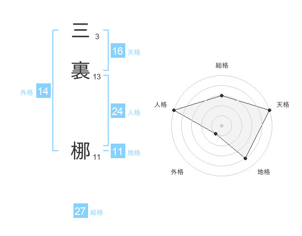 三裏 梛さんの天格は16画の5点!