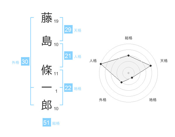 藤島 條一郎さんの総格は51画の3点!
