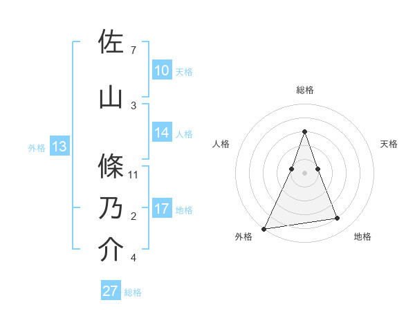 佐山 條乃介さんを姓名の画数から五運を鑑定