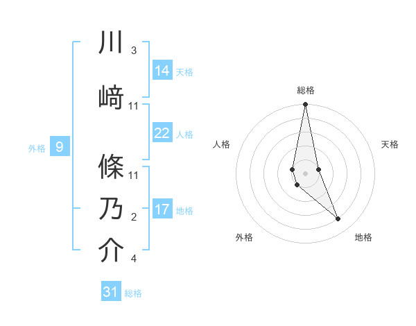 川﨑 條乃介さんの総格は31画の5点!