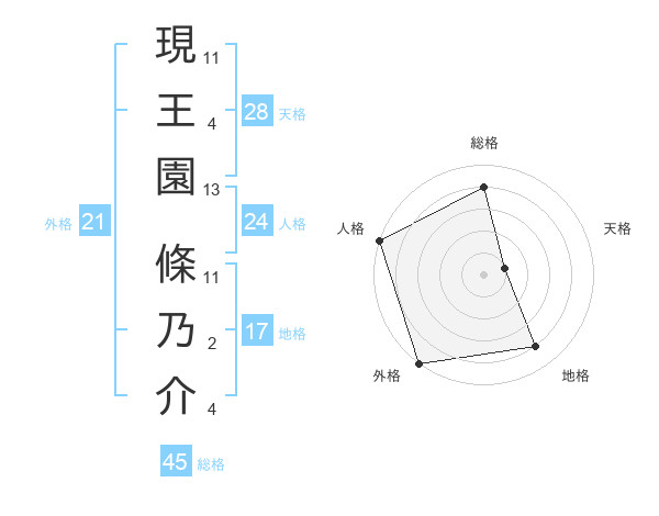 現王園 條乃介さんを姓名の画数から五運を鑑定