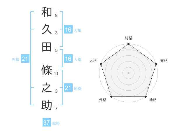 和久田 條之助さんを姓名の画数から五運を鑑定