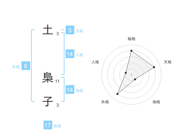 土 梟子さんの総格は17画の4点!
