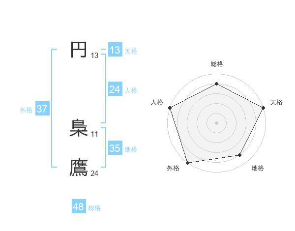 円 梟鷹さんの総格は48画の4点!