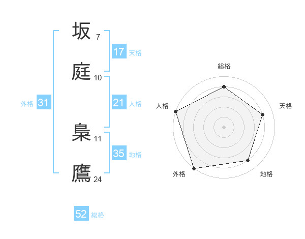 坂庭 梟鷹さんの総格は52画の4点!