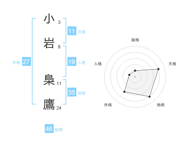 小岩 梟鷹さんの総格は46画の1点!