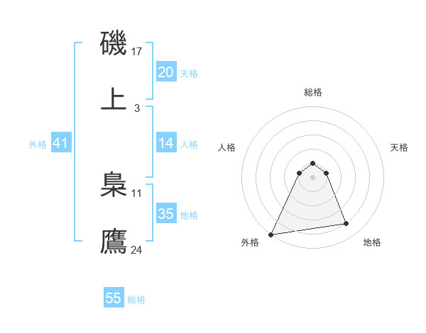 磯上 梟鷹さんを姓名の画数から五運を鑑定