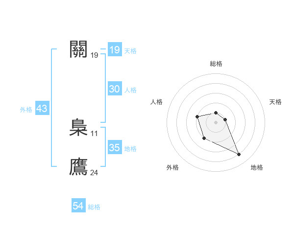 關 梟鷹さんの総格は54画の1点!