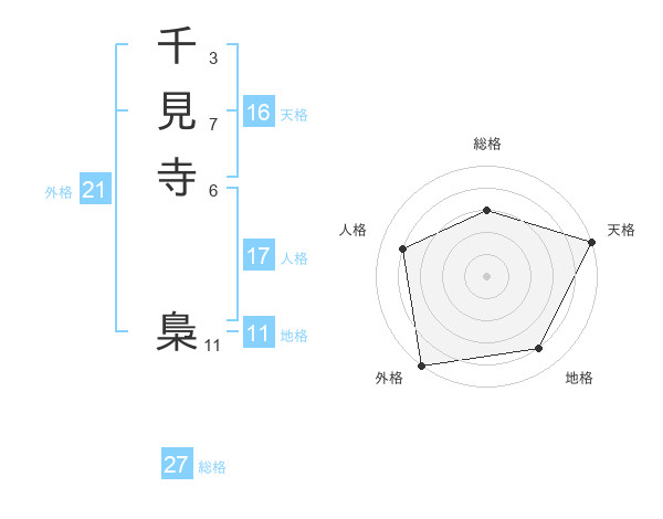 千見寺 梟さんの外格は21画の5点!