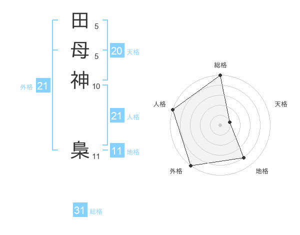 田母神 梟さんの外格は21画の5点!