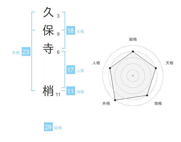 久保寺 梢さんの総格は29画の4点!