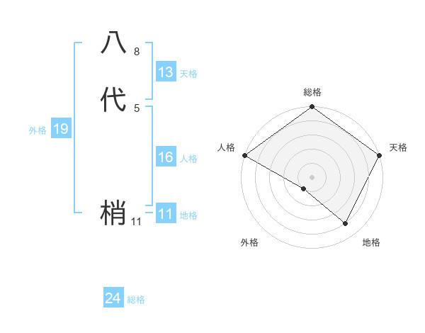 八代 梢さんを姓名の画数から五運を鑑定