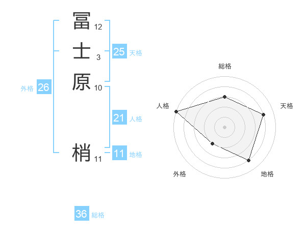 冨士原 梢さんの総格は36画の3点!
