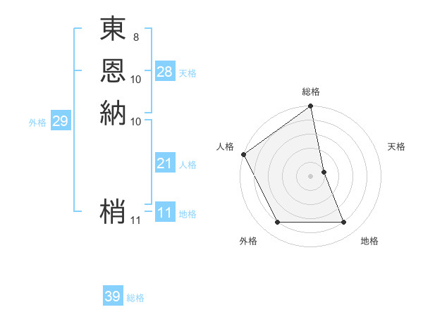 東恩納 梢さんを姓名の画数から五運を鑑定