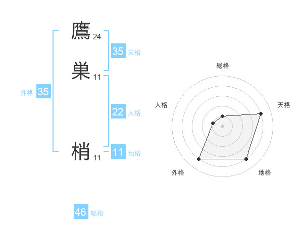 鷹巣 梢さんの外格は35画の4点!