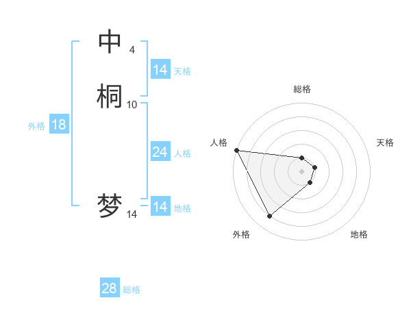 中桐 梦さんの総格は28画の1点!