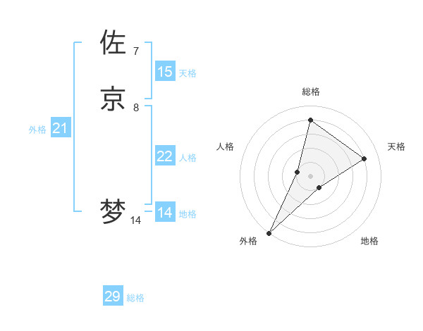 佐京 梦さんの外格は21画の5点!