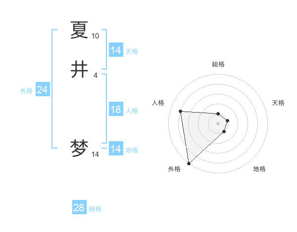 占い結果は姓名判断である以上、良い場合も悪い場合もありますが、決してお名前を誹謗中傷するものでなく、画数の自動計算によって得られたものです。また、本サイトの検索によって得られた鑑定結果で、第三者を誹謗中傷したり名誉を棄損するような行為を禁じます。