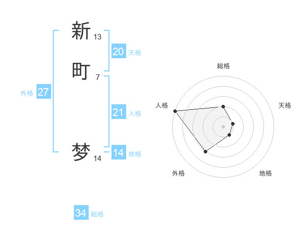 新町 梦さんの総格は34画の2点!
