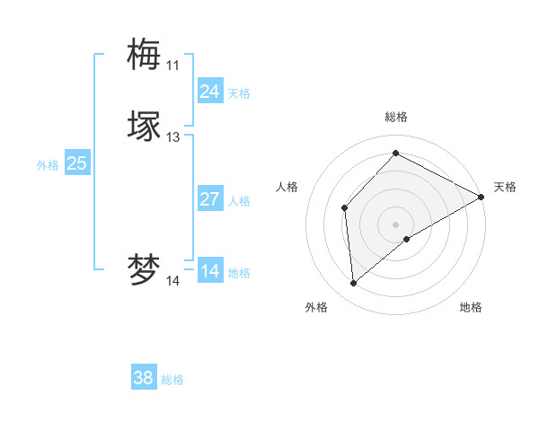 梅塚 梦さんの天格は24画の5点!