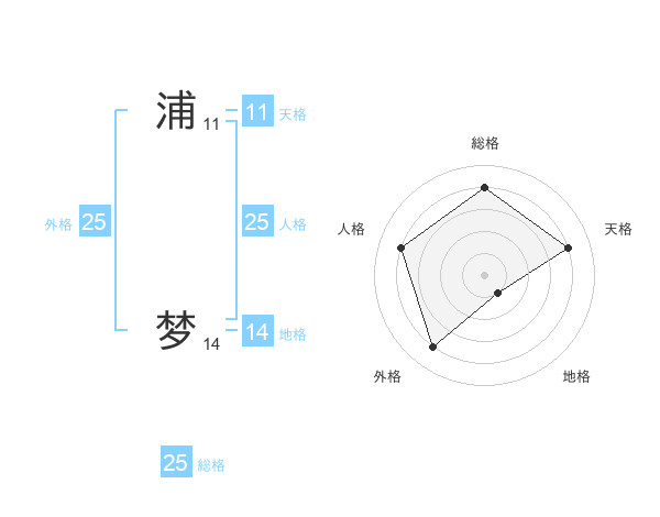 浦 梦さんの総格は25画の4点!