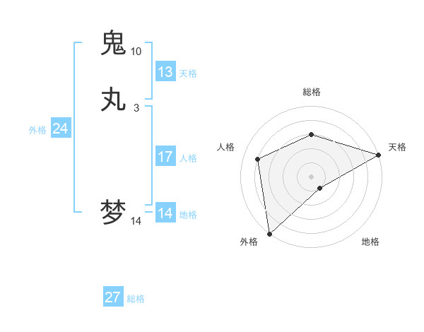 鬼丸 梦さんの天格は13画の5点!