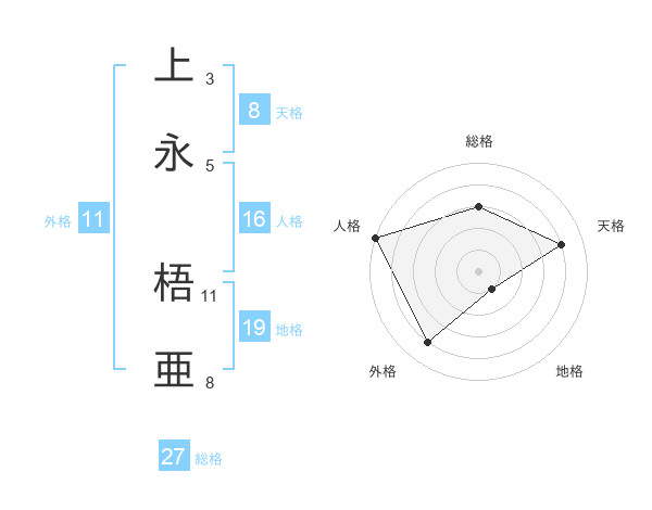 上永 梧亜さんの総格は27画の3点!