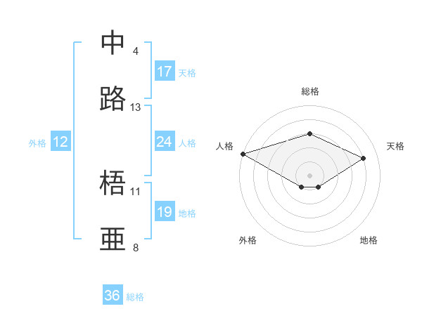 中路 梧亜さんの天格は17画の4点!
