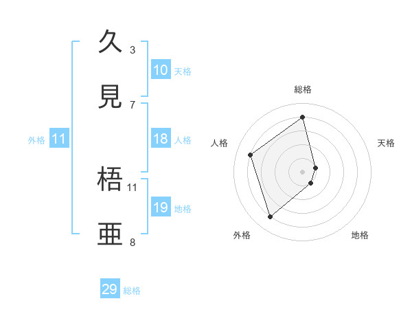 久見 梧亜さんを姓名の画数から五運を鑑定