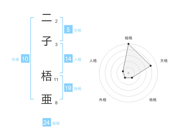 二子 梧亜さんの天格は5画の4点!