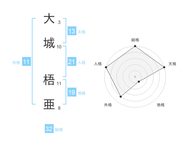 大城 梧亜さんの人格は21画の5点!