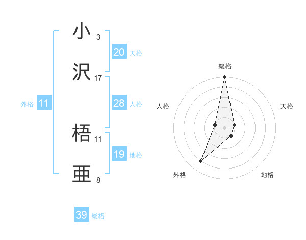 小沢 梧亜さんの総格は39画の5点!