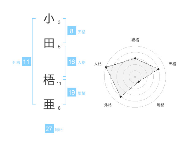小田 梧亜さんの総格は27画の3点!